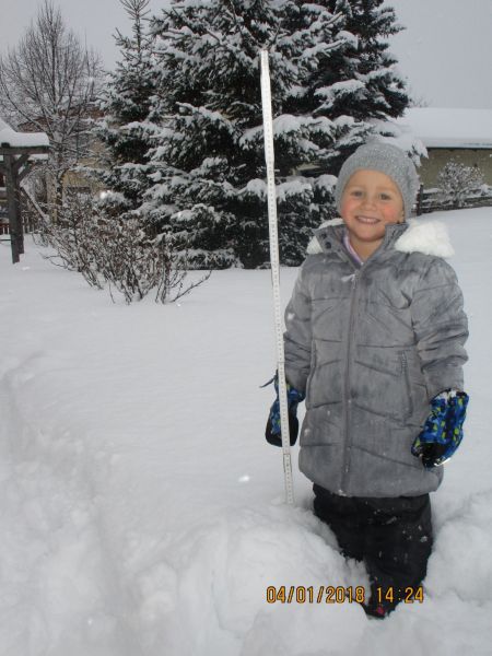 Julia misst bereits 35 cm Neuschnee, und es schneit immer noch weiter.